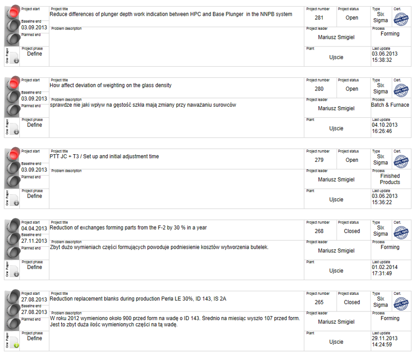 Zarządzanie projektami poprzez wizualizację świateł. Nie musimy marnować czasu żeby wejść głębiej w projekt i zobaczyć czy już czas na reagowanie u Lidera projektu czy jest OK. Czerwone – źle, pomarańczowe – uwaga, jeszcze chwila, zielone -OK, bez świateł projekt jeszcze się nie rozpoczął.