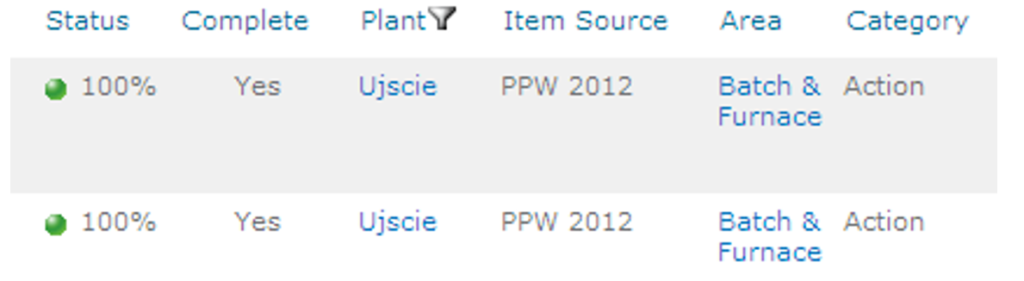 Poniżej projekty z innej grupy gdzie podświetlało nam w ten sam sposób dodając procent wykonania. Można założyć filtr i pokazać tylko nie skończone projekty lub tak jak na zdjęciu poniżej zakończone.
